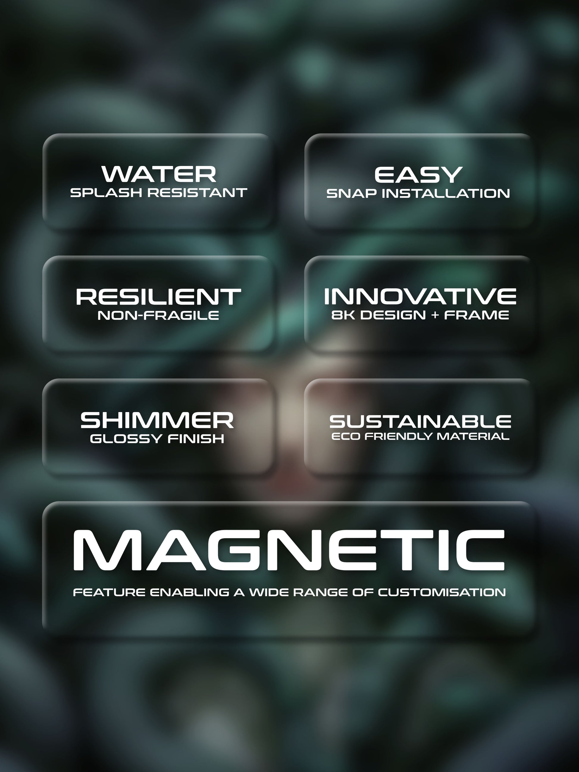 We craft each frame using top-notch materials in our own facility, ensuring quality from start to finish. Our frames boast a water-resistant surface, a hassle-free magnetic grip for easy installation, and durability without the fragility of glass. The high-resolution images are framed under acrylic borders, using sustainable materials to minimize environmental impact.