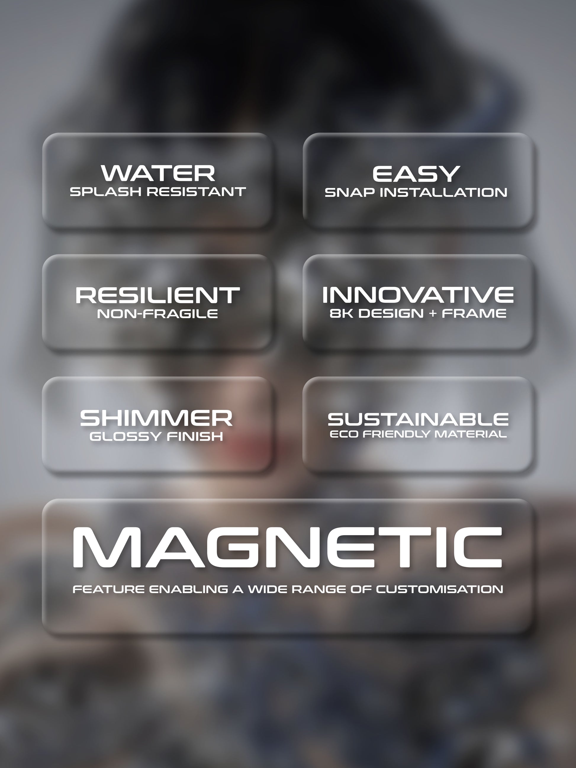 We craft each frame using top-notch materials in our own facility, ensuring quality from start to finish. Our frames boast a water-resistant surface, a hassle-free magnetic grip for easy installation, and durability without the fragility of glass. The high-resolution images are framed under acrylic borders, using sustainable materials to minimize environmental impact.