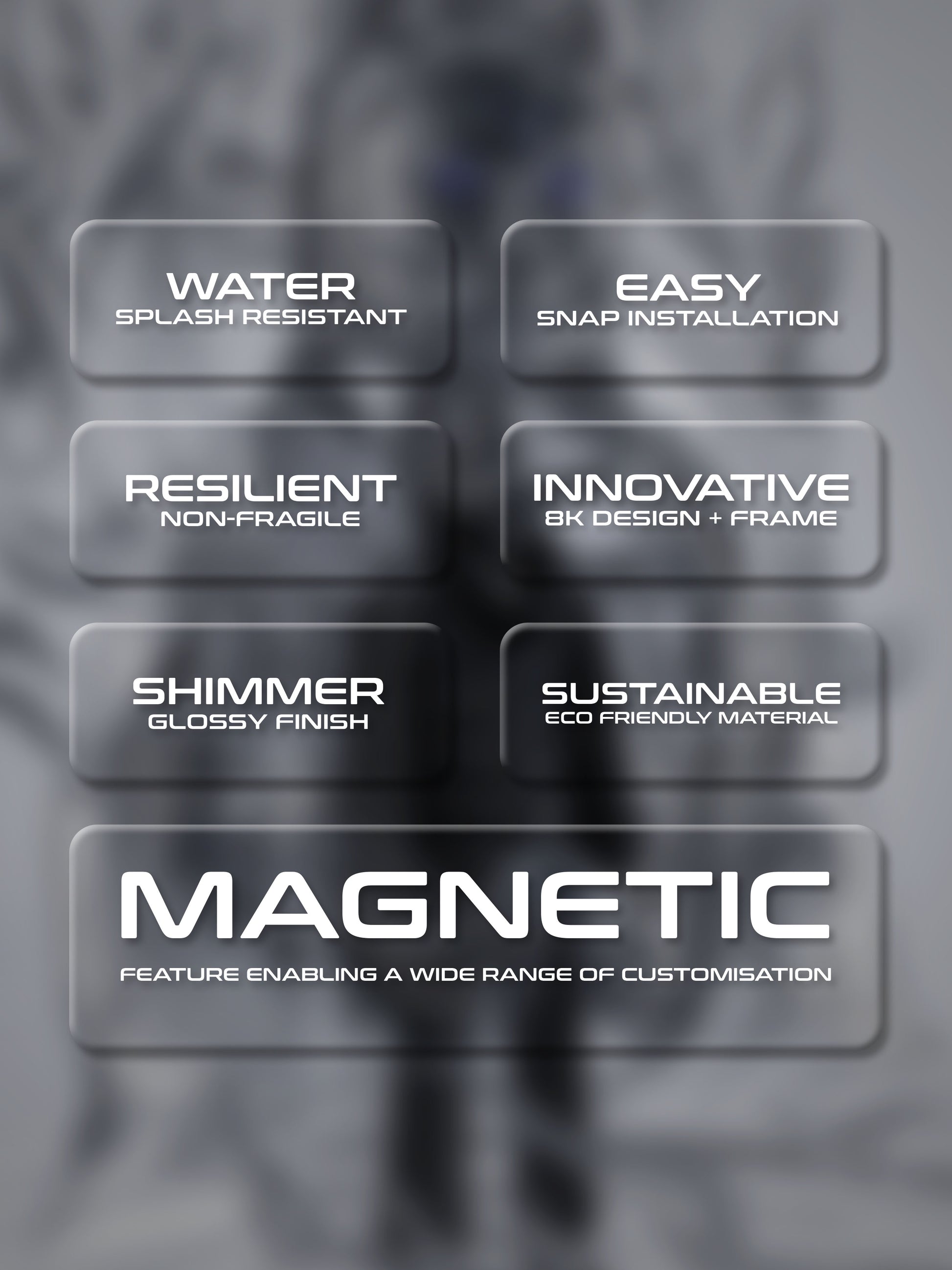 We craft each frame using top-notch materials in our own facility, ensuring quality from start to finish. Our frames boast a water-resistant surface, a hassle-free magnetic grip for easy installation, and durability without the fragility of glass. The high-resolution images are framed under acrylic borders, using sustainable materials to minimize environmental impact.