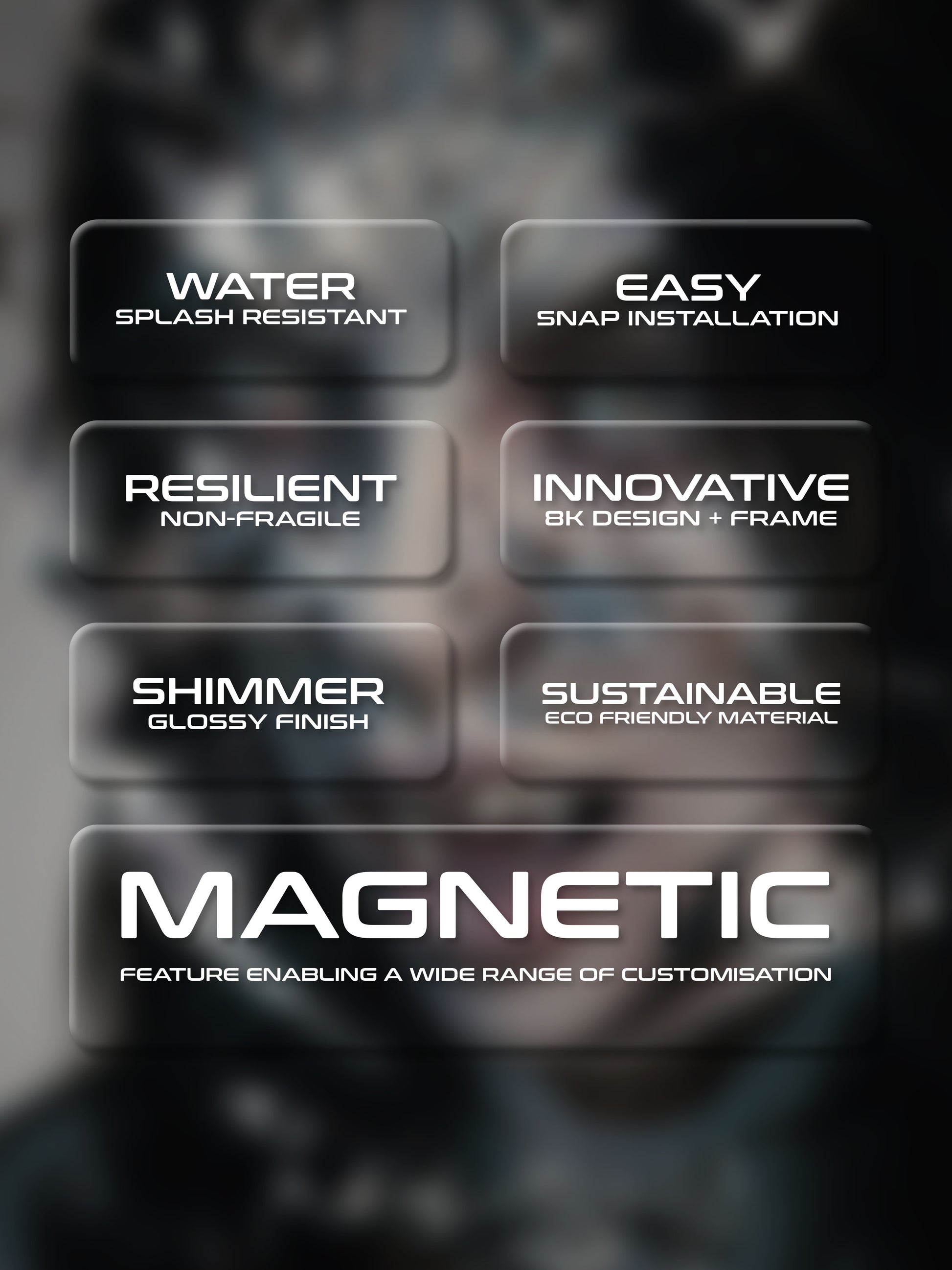 We craft each frame using top-notch materials in our own facility, ensuring quality from start to finish. Our frames boast a water-resistant surface, a hassle-free magnetic grip for easy installation, and durability without the fragility of glass. The high-resolution images are framed under acrylic borders, using sustainable materials to minimize environmental impact.