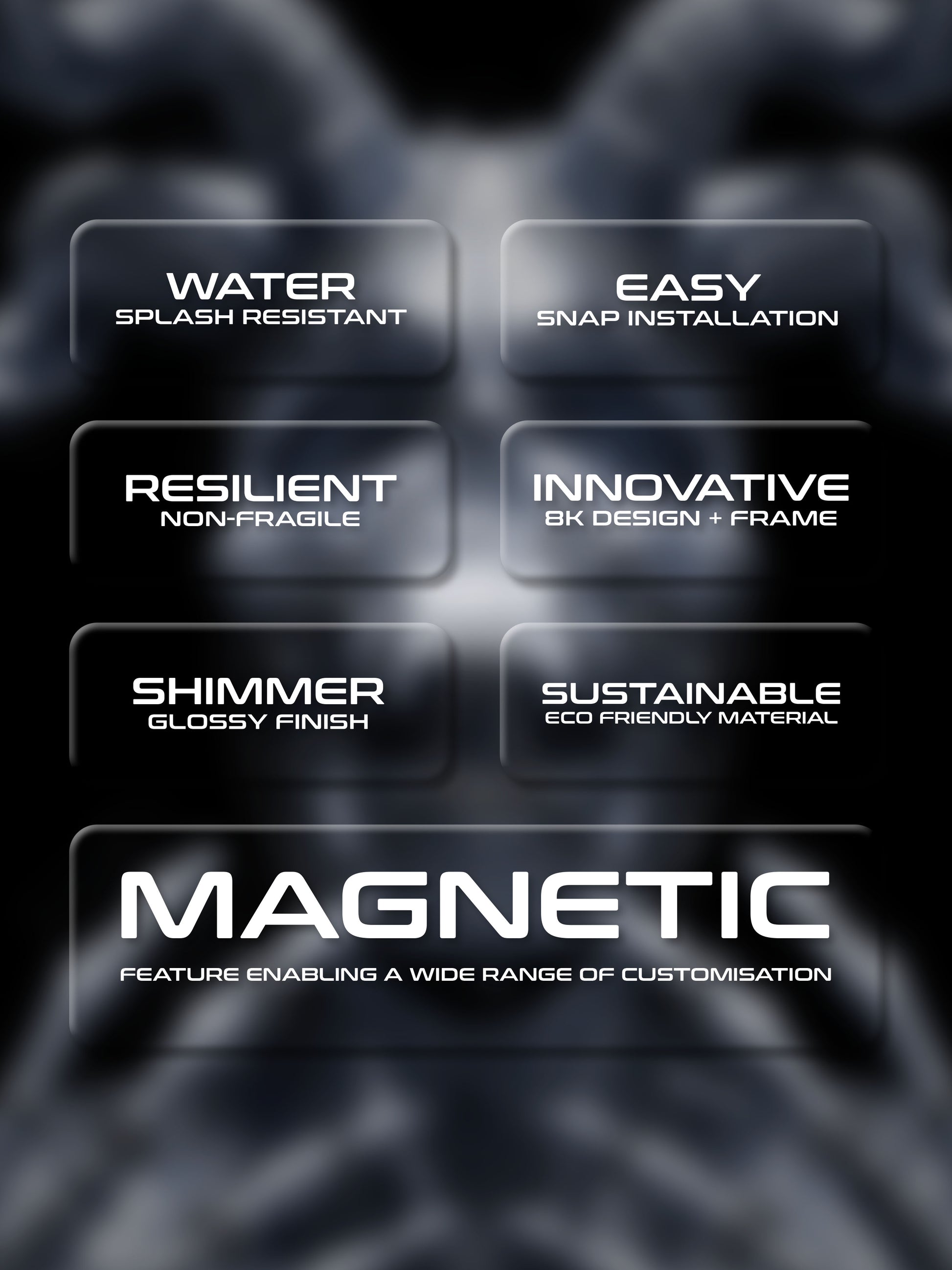 We craft each frame using top-notch materials in our own facility, ensuring quality from start to finish. Our frames boast a water-resistant surface, a hassle-free magnetic grip for easy installation, and durability without the fragility of glass. The high-resolution images are framed under acrylic borders, using sustainable materials to minimize environmental impact.