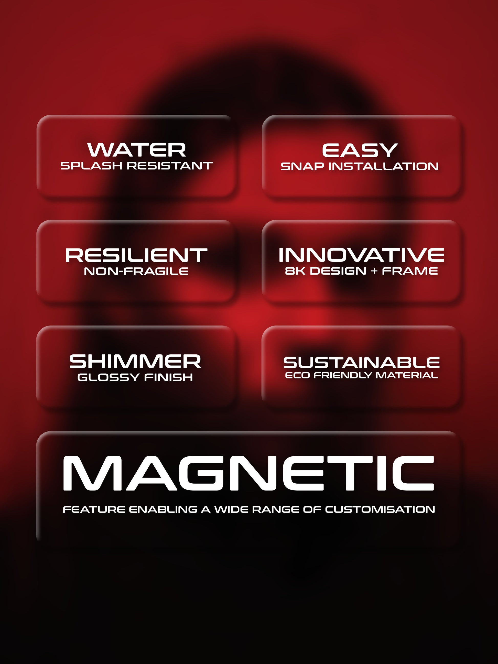 We craft each frame using top-notch materials in our own facility, ensuring quality from start to finish. Our frames boast a water-resistant surface, a hassle-free magnetic grip for easy installation, and durability without the fragility of glass. The high-resolution images are framed under acrylic borders, using sustainable materials to minimize environmental impact.