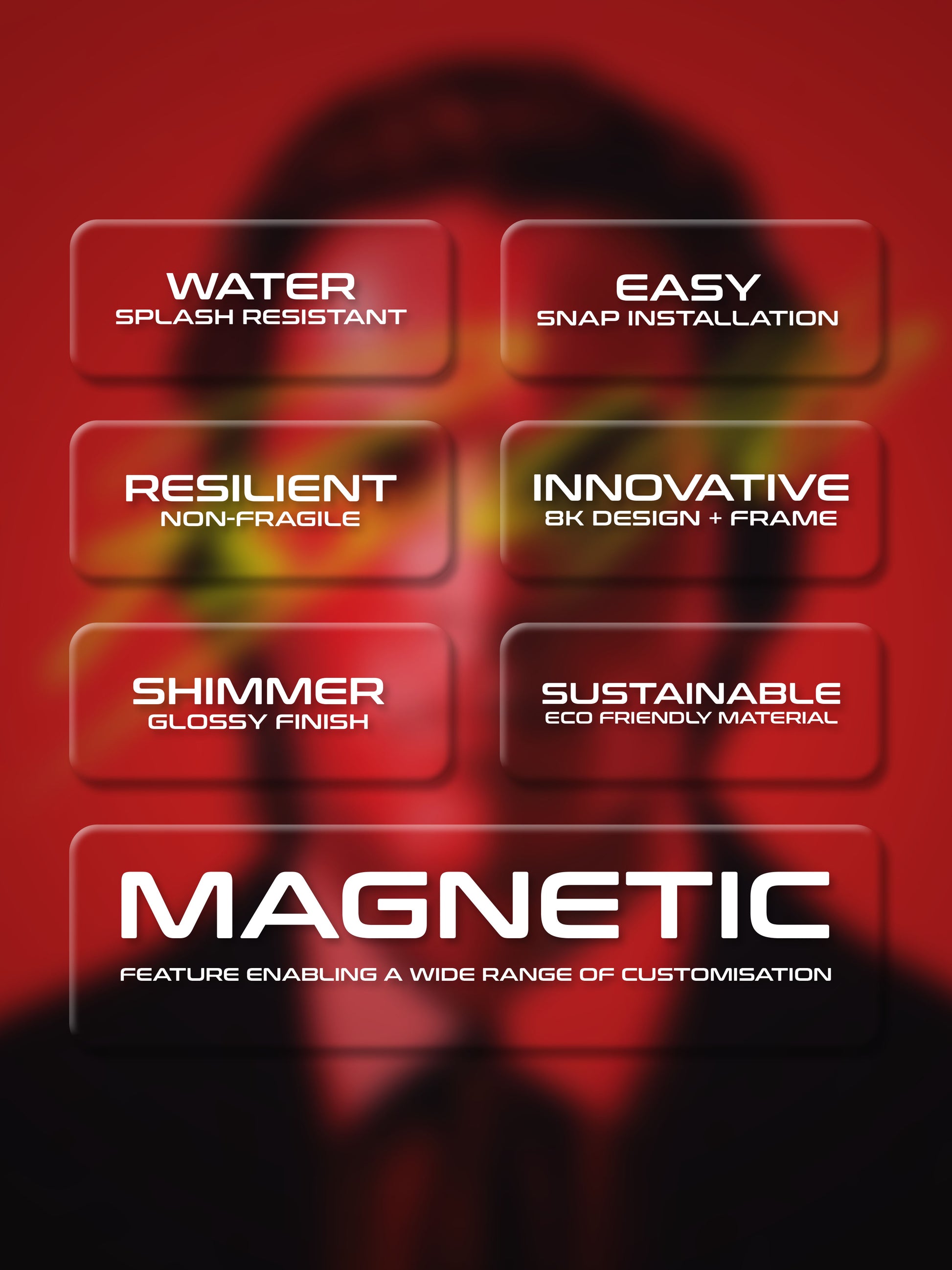 We craft each frame using top-notch materials in our own facility, ensuring quality from start to finish. Our frames boast a water-resistant surface, a hassle-free magnetic grip for easy installation, and durability without the fragility of glass. The high-resolution images are framed under acrylic borders, using sustainable materials to minimize environmental impact.