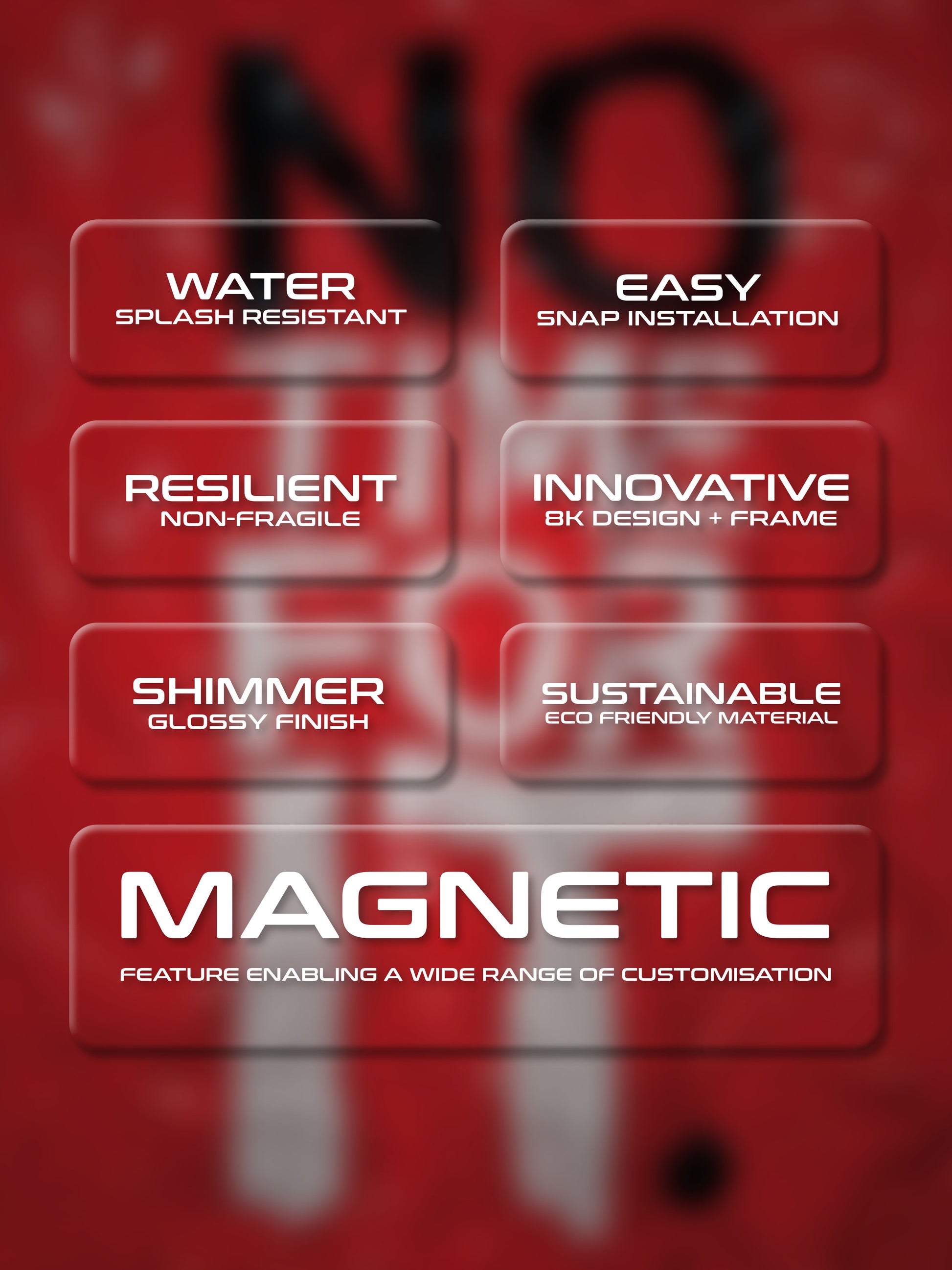 We craft each frame using top-notch materials in our own facility, ensuring quality from start to finish. Our frames boast a water-resistant surface, a hassle-free magnetic grip for easy installation, and durability without the fragility of glass. The high-resolution images are framed under acrylic borders, using sustainable materials to minimize environmental impact.