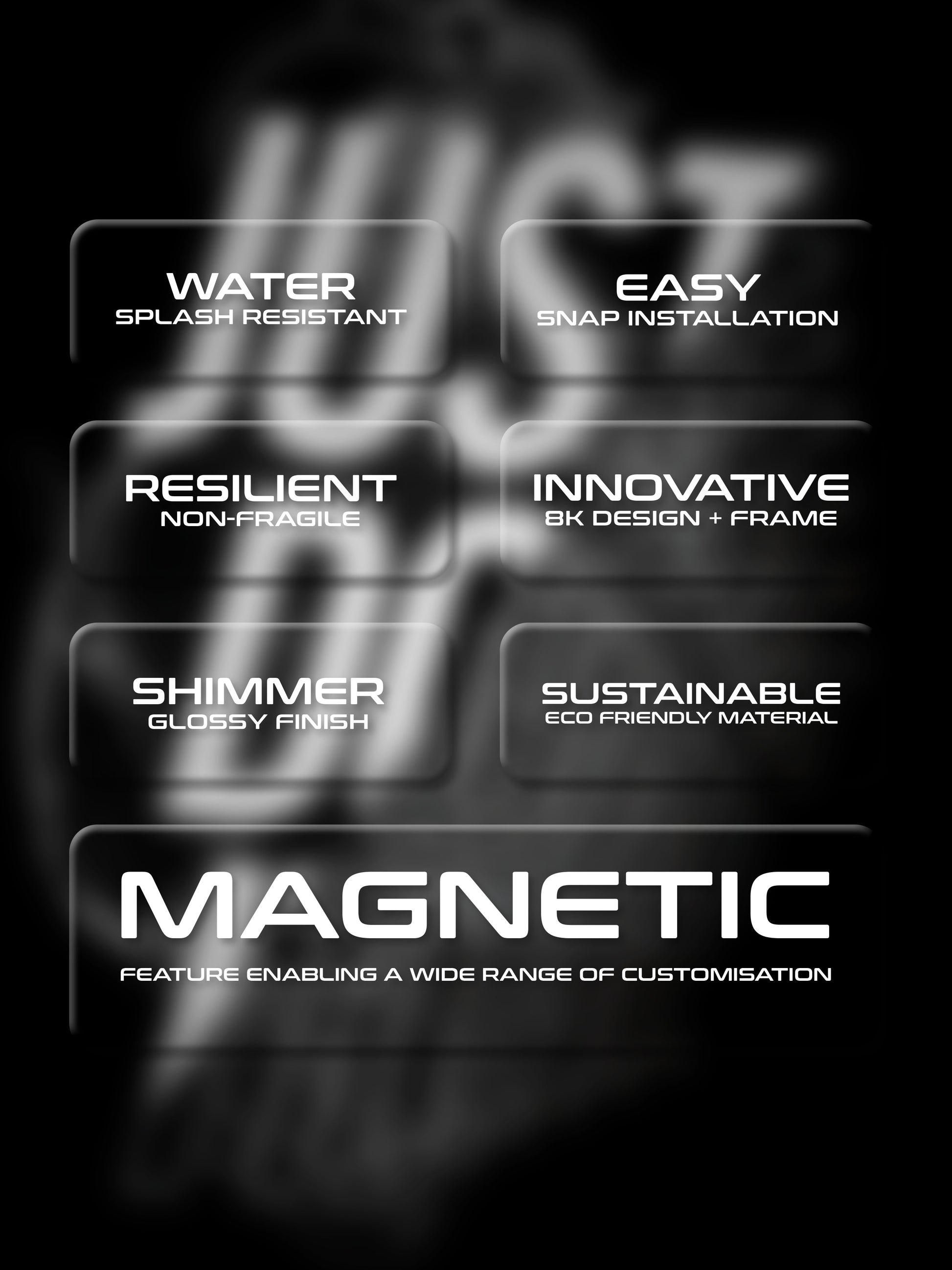 We craft each frame using top-notch materials in our own facility, ensuring quality from start to finish. Our frames boast a water-resistant surface, a hassle-free magnetic grip for easy installation, and durability without the fragility of glass. The high-resolution images are framed under acrylic borders, using sustainable materials to minimize environmental impact.