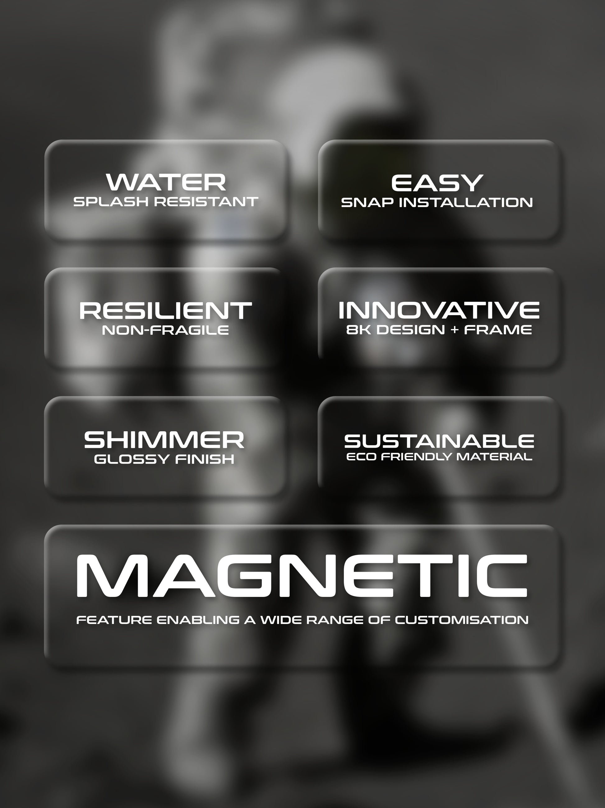 We craft each frame using top-notch materials in our own facility, ensuring quality from start to finish. Our frames boast a water-resistant surface, a hassle-free magnetic grip for easy installation, and durability without the fragility of glass. The high-resolution images are framed under acrylic borders, using sustainable materials to minimize environmental impact.