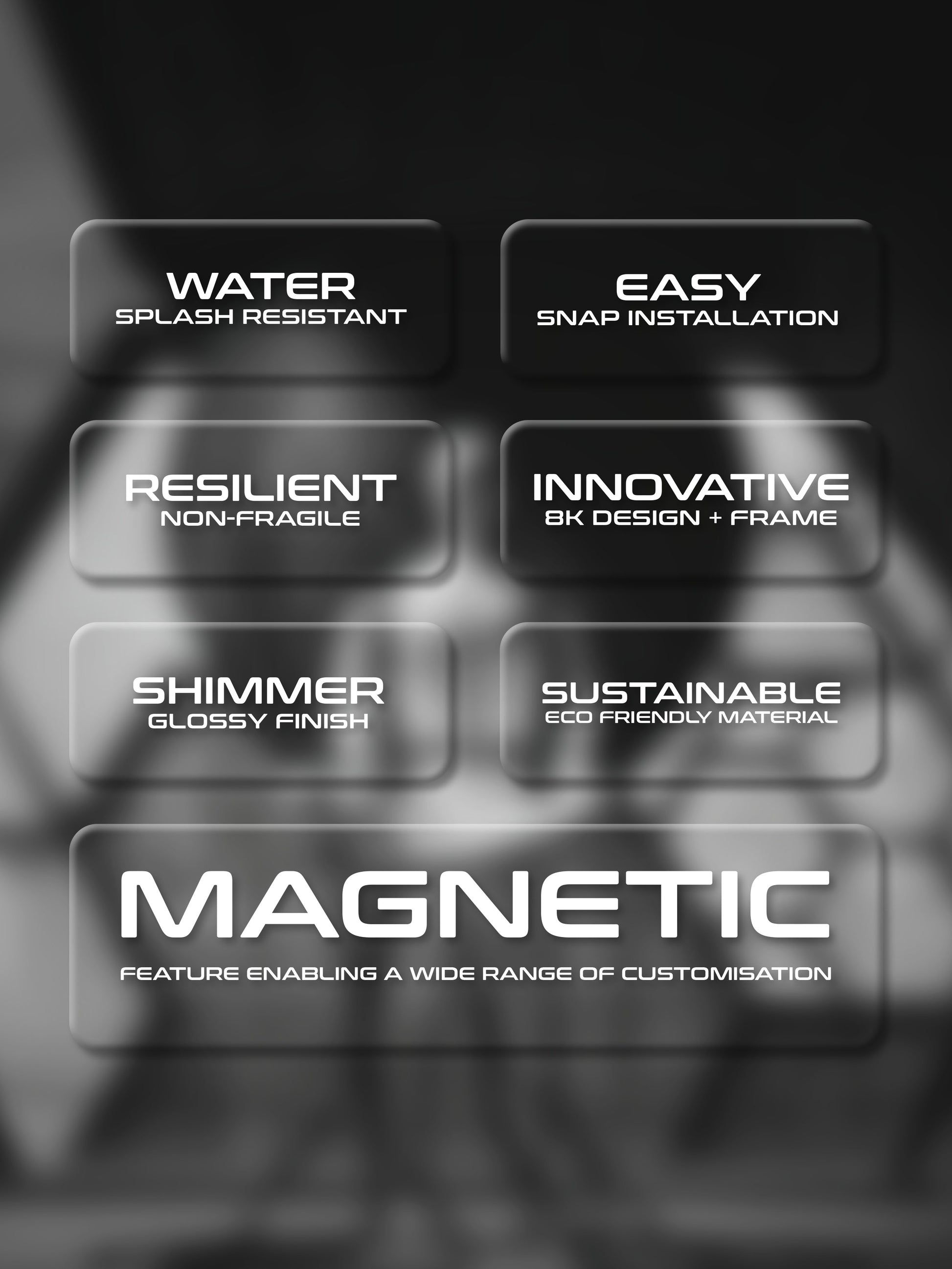We craft each frame using top-notch materials in our own facility, ensuring quality from start to finish. Our frames boast a water-resistant surface, a hassle-free magnetic grip for easy installation, and durability without the fragility of glass. The high-resolution images are framed under acrylic borders, using sustainable materials to minimize environmental impact.